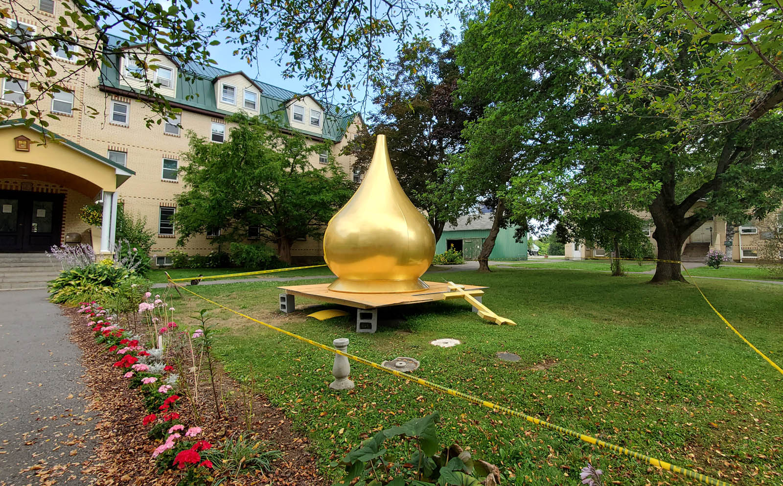 The cupolas on our church were originally installed over 70 years ago. They were handmade out of wood by the Brotherhood. In the past decade, however, the crosses on the cupolas began to lean and shift out of place. An initial inspection showed deterioration of the wood due to water damage with one cross leaning over to such an extent that we feared it would soon fall off the roof.