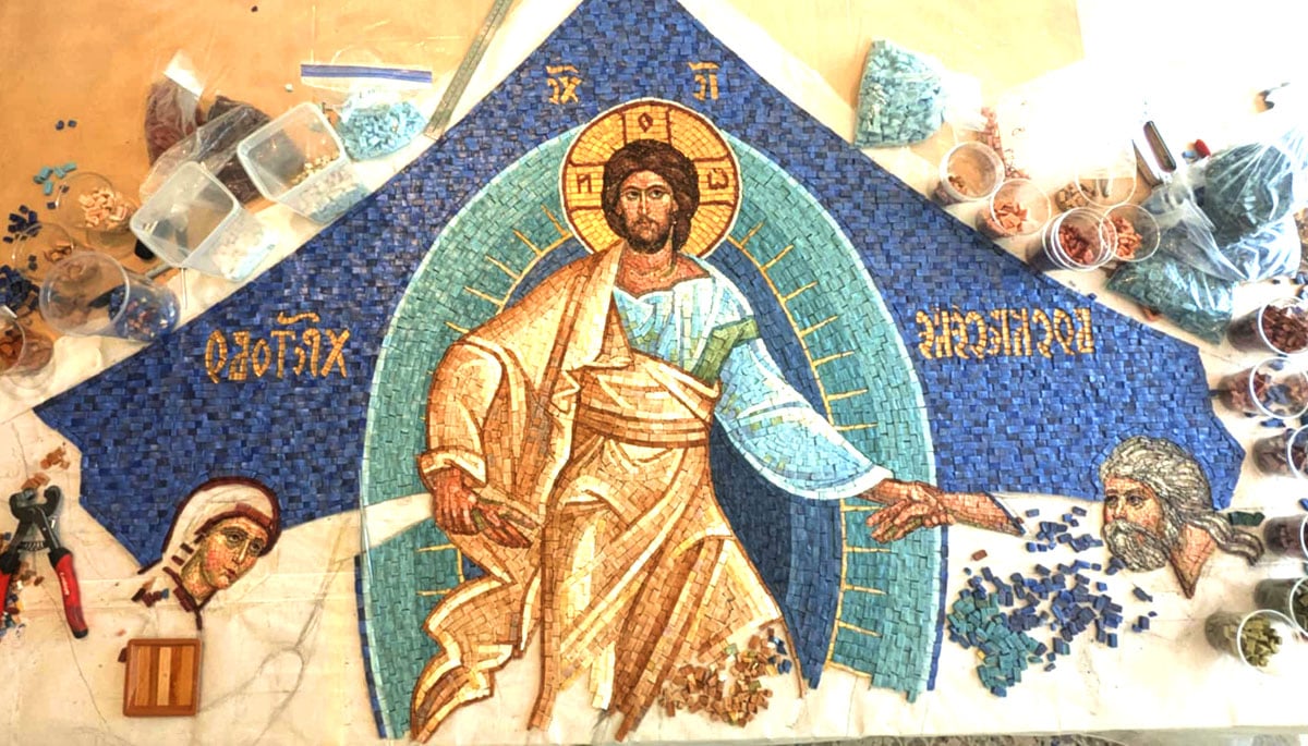 All three mosaics appear as if they haven’t aged at all since we commissioned them. Mosaics are so durable that even some from 5th-century Byzantium have survived to our time. A decision was made to replace the two fading frescoes with mosaic copies of the original icons.